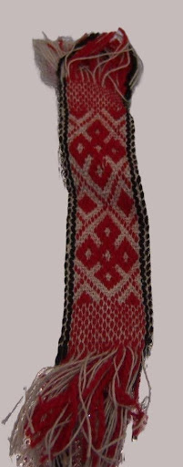 Juuru kirivöö motiividega kootud järjehoidja(kitsas). Materjal villane ja linane.